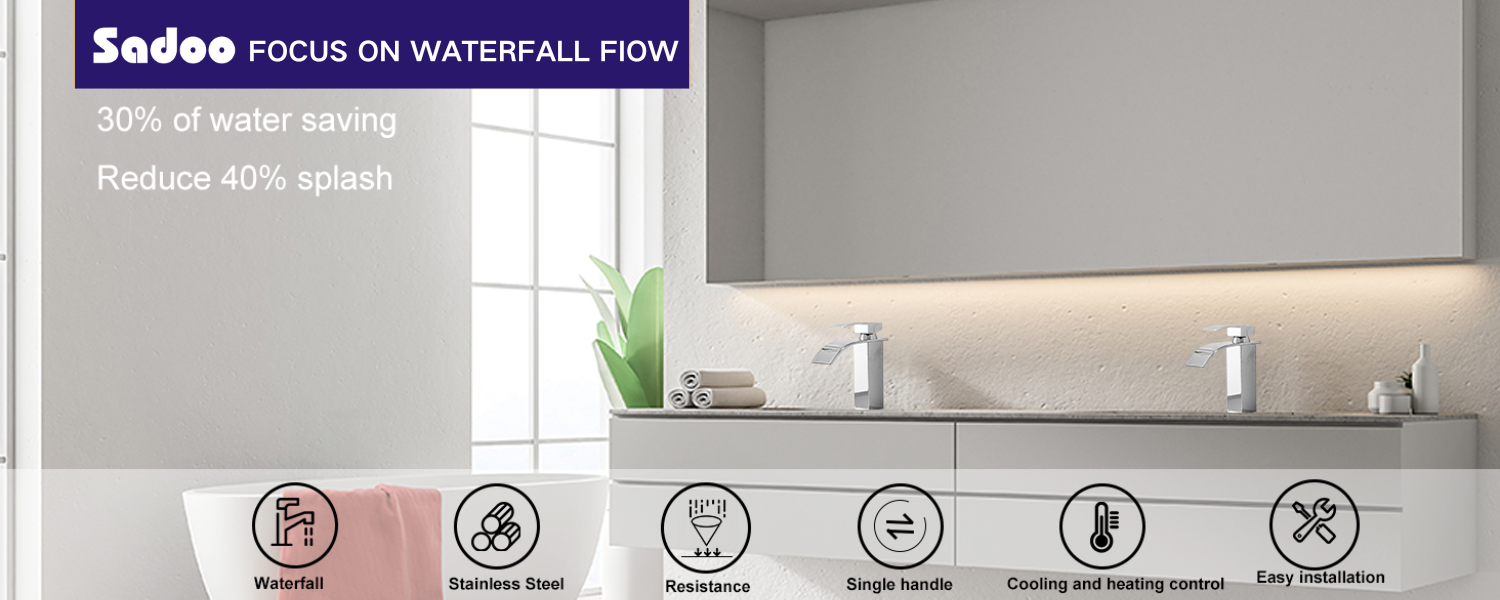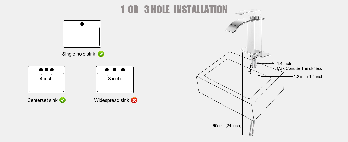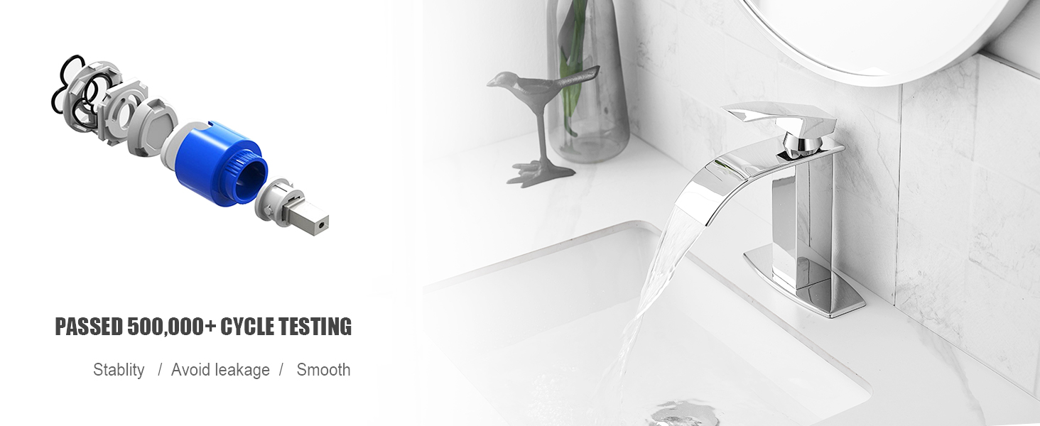 - WATERFALL FAUCET - Waterfall spout and Single handle for effortless flow and easily water adjust.