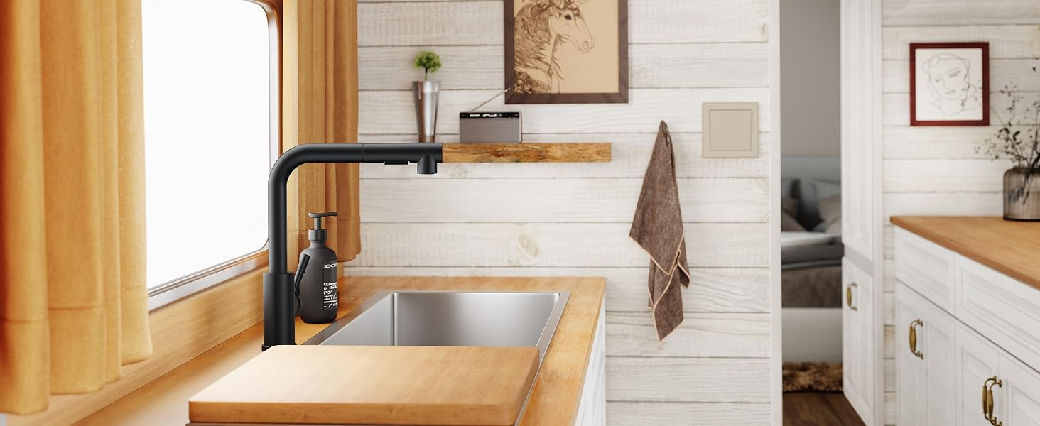 - Ideal for Various Locations: This pull out kitchen faucet is compact with a height of 11.96" and a spout height of 10.28", it fits perfectly in any space, such as kitchen sinks, laundry rooms, RVs, bars, and more