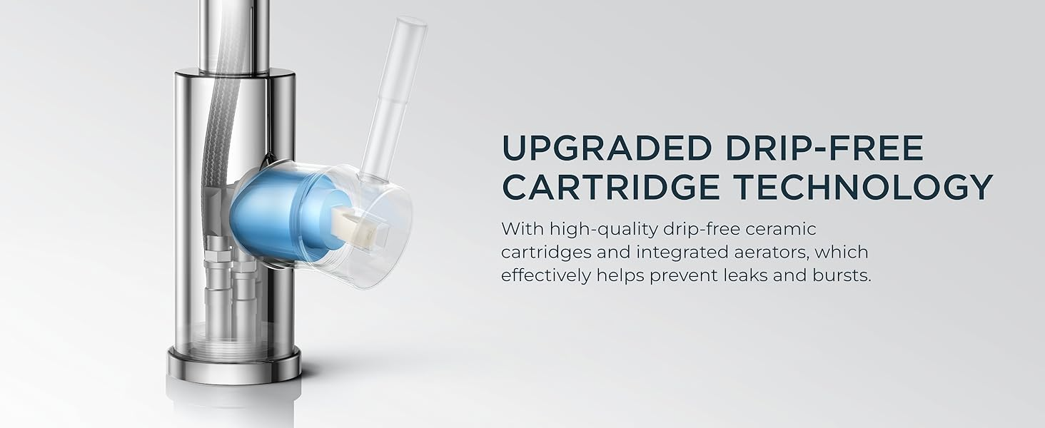 - Premium Quality: This modern kitchen sink faucet is crafted from premium sus 304 stainless steel, meeting lead-free standards, and the ceramic cartridge has been tested 5000,000+ times to ensure it is truly leak-proof and drip-free