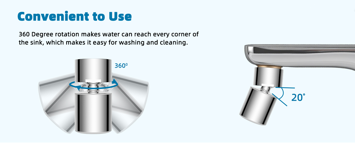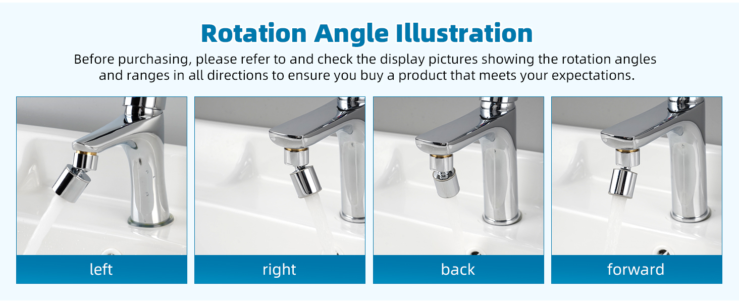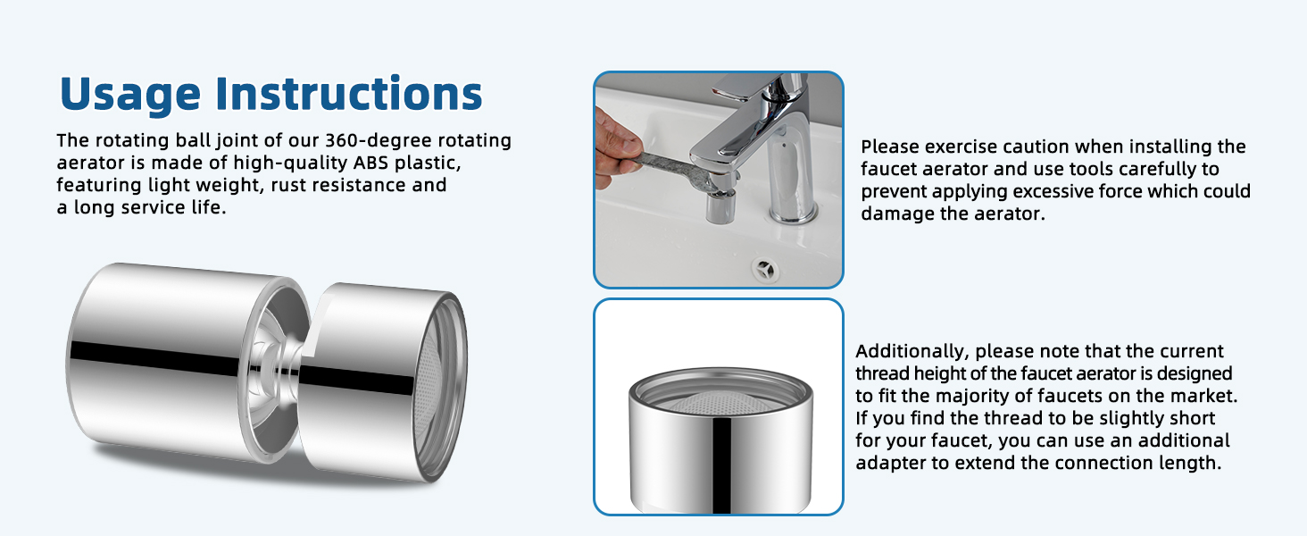 High Quality Material: The main body of the faucet swivel attachment is crafted from high-quality material, with the swivel ball joint made of ABS (plastic). The rotating faucet aerator features a smooth, chrome-plated surface—note that the product color is chrome—designed to withstand water pressure fluctuations and resist daily rusting. We recommend confirming the chrome color meets your needs before purchase
