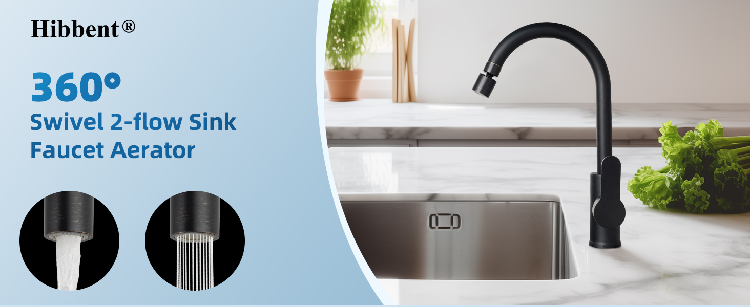 Dual-function 2 Flow Sprayer: Hibbent kitchen faucet aerator has 100% anti-leakage, rotate the bottom part and change the soft bubble stream to convert strong spray with 360 degree swivel