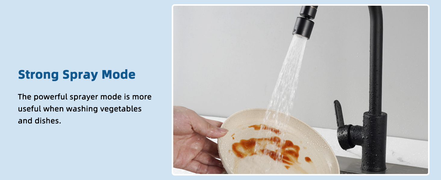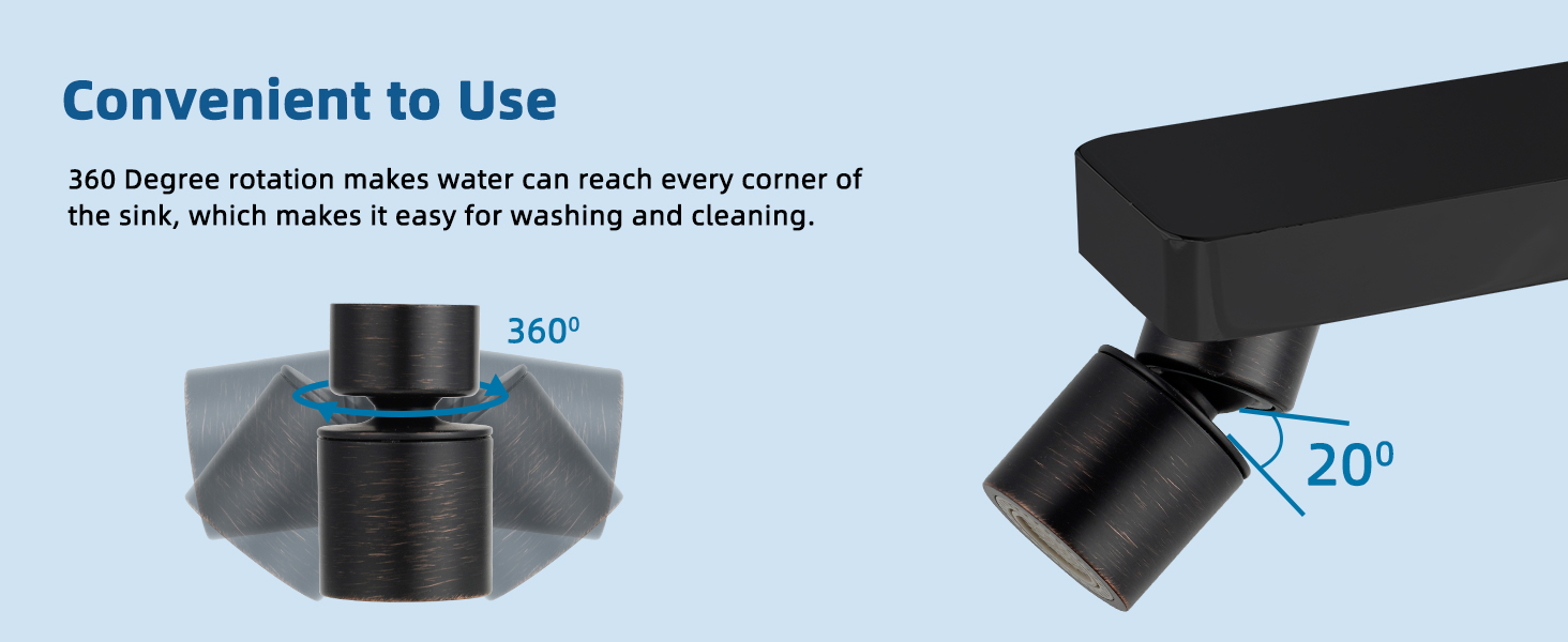 Big Angle Rotation: Upgraded big rotation angle makes the water flow reach every corner of the sink making it very convenient for washing and cleaning