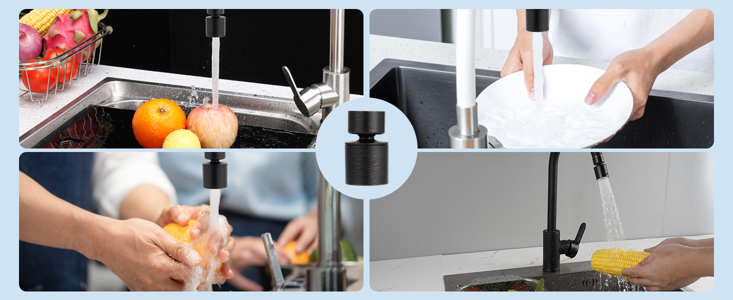 High-Quality Material: The main body of the faucet swivel attachment is made of high-quality material, which can withstand water pressure changes and daily rust. The dual-function faucet aerator can be fitted to kitchen, sink faucets, bathroom taps, and lavatory faucets