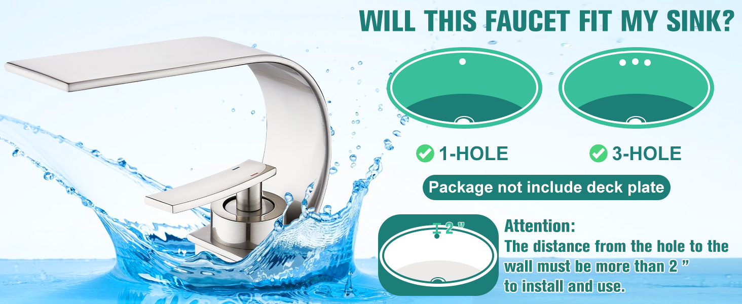 【Easy and Quick Installation】: Water supply pipeline, brass hose fitting, installation hardware and operating instructions are all included for easy installation(deck plate and sink drain not included); Fits for single-hole or Three-hole sinks.